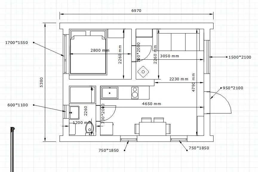 ДxШxВ: 6980x5380x3020 мм + тераса 2510х5380х3020